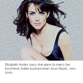 Elizabeth Hurley says she plans to marry her boyfriend, Indian businessman Arun Nayer, very soon.