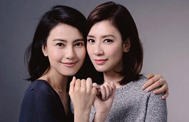 Actresses Gao Yuanyuan and Alyssa Chia pose for charitable photos.