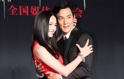 Chinese actor Andy Lau and actress Yao Chen attend a news conference for their upcoming movie "Firestorm" on Oct 28, 2013.