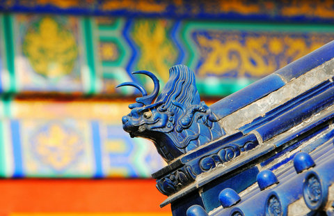 A clear sky and sunshine brighten the winter scenes at Beijing's Temple of Heaven, Jan 19, 2016. Vivid reds, greens, yellows, blues and dark greys contrast with the cloudless sky.