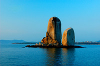 To the northwest of Pingtan Island and along the more than 500-meter sea surface in the west of Aocun Village stands a disc-shaped reef, which holds two tablet-shaped rocks. The combination of these rocks is like a big ship with two sails, riding on the crest of waves.