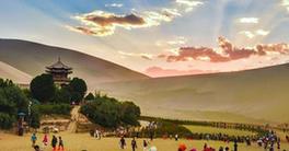 Tourists visit Mingsha Mountain in Dunhuang