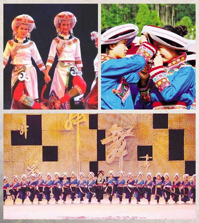 Literally translated as “dance for the married girl” -- the dance sees Yi women dress in traditional embroidered outfits and dance in unison to express their best wishes to a young bride before she ties the knot.
