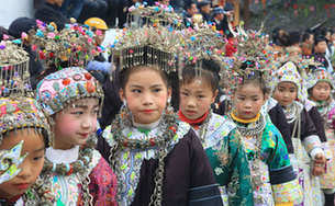 Dong people perform for traditional New Year festival