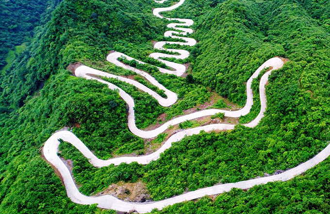 A road winds through Liuba mountain in Hanzhong, Northwest China's Shaanxi province, on Nov 18, 2015.