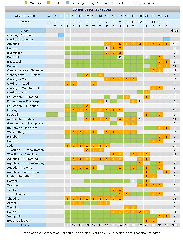 Games Schedule for 2008 Beijing Olympics