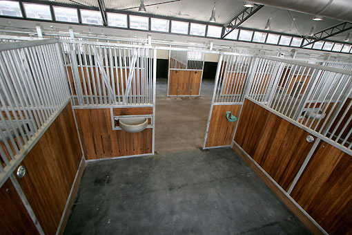 | An interior view of one of the 270 air-conditioned stables for the Beijing 2008 Olympic Games near Shatin race track in Hong Kong in this July 7, 2007, handout photo. [Reuters] |