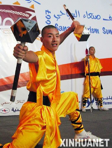 Chinese performers demonstrated Chinese martial arts in Yemen on Tuesday, July 17, 2007. Hundreds of local audience in Sana'a were attracted to the oriental exciting kung fu performances, brought by visiting martial arts team from Beijing's Shaolin Martial Arts School. [Xinhua]