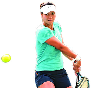 Li Na returns a ball during a training session at the China Tennis Grand Prix in Guangzhou on Sunday. [Courtesy of Beijing International Group] |