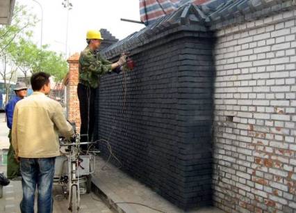 A worker paints the wall of the Dashibei Hutong, Xicheng District on April 17, 2008. [chinadaily.com.cn]