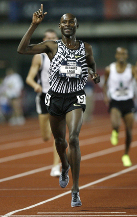 Twice an Olympic medallist for Kenya in the 1,500 metres, Lagat ran conservatively until 200 metres from the end before surging clear to win by more than 10 metres in 13 minutes 27.47 seconds.