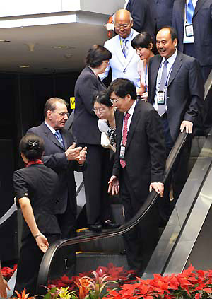 Hours before Rogge's arrival, IOC honorary president Juan Antonio Samaranch also landed at the Chinese capital. The 88-year-old Spaniard is expected to stay at the city until the end of the games.