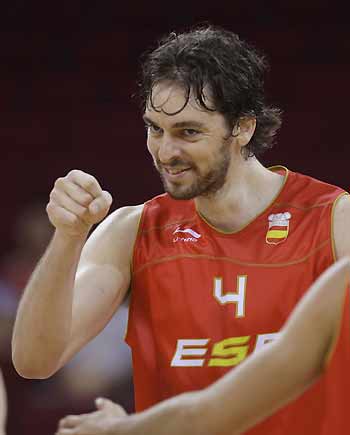 Pau Gasol of Spain reacts during their men's preliminary round group B basketball game against Germany at the Beijing 2008 Olympic Games August 14, 2008.[Agencies]