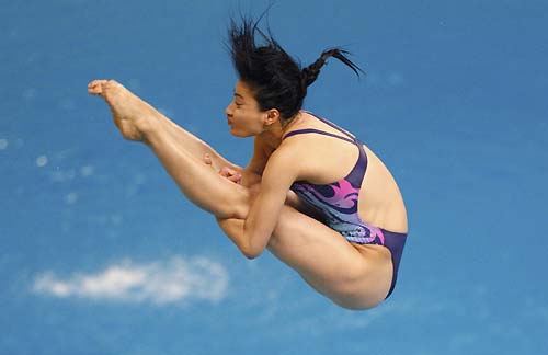 Guo Jingjing of China dives during the women's 3m springboard diving final at the National Aquatics Center during the 2008 Beijing Olympic Games in Beijing on August 17, 2008. Guo Jingjing of China won the gold medal in the women's 3m springboard diving final, followed by Julia Pakhalina of Russia with silver and Wu Minxia of China with bronze. [Agencies]