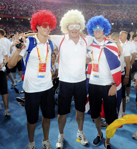 Members of the British Olympic team pose for a photo during the closing ceremony of the Beijing 2008 Olympic Games at the National Stadium August 24, 2008.[Agencies]