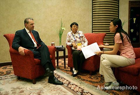 IOC President Jacques Rogge receives an exclusive interview with China Daily, China's only national English-language newspaper, in Beijing on September 17, 2008. [Photo by Xu Jingxing/China Daily]