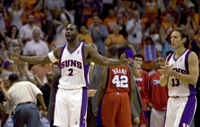 Phoenix Suns forward Tim Thomas (2) and guard Steve Nash (13)