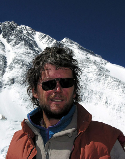 Australian mountaineer Lincoln Hall stands in front of Mount Everest before