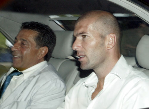 Zidane (R) sits in a car as he leaves the FIFA headquarters in Zurich July 20,