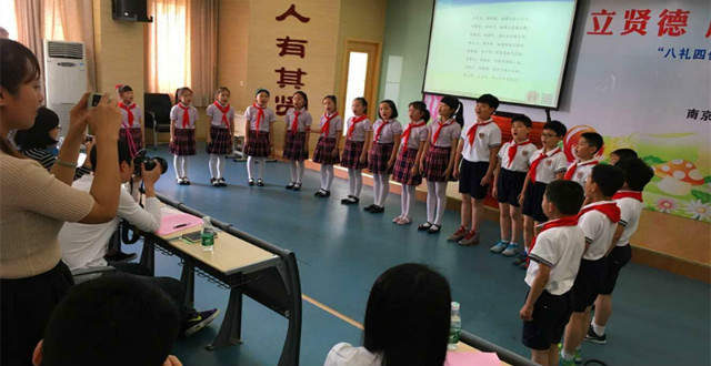 Pupils from Nanjing Chengxianjie Primary School sing nursery rhymes.