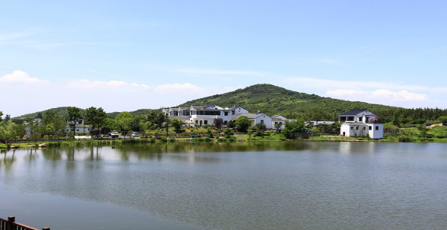 A picturesque lake laps at the edge of Huanglongxian village in Jiangning District, Nanjing City