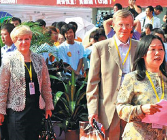 Li Jinxiu, vice governor of Jilin province, reports on the progress of the 11th China-Northeast Asia Expo to Jiang Zengwei, president of the China Council for the Promotion of International Trade (CCPIT) in Beijing.