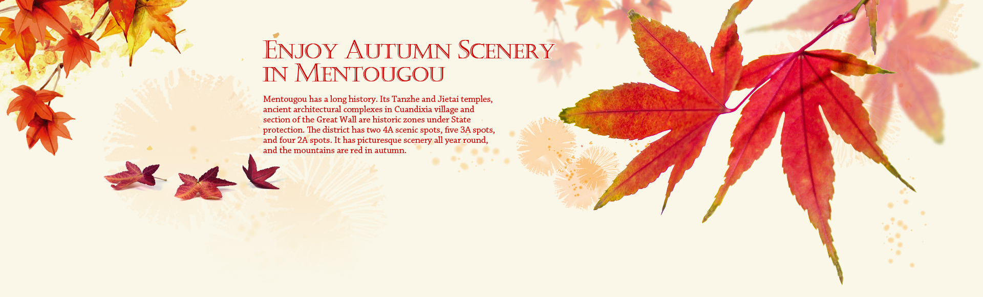 Tanzhe Temple is a State AAAA Scenic Spot and a top-priority protected relic site. It is located in Mentougou District, about 30 kilometers from downtown Beijing.