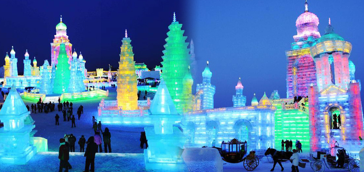 Tourists visit the Ice and Snow World in Harbin, Heilongjiang province, on the first trial opening day of Dec. 24, 2011. The 13th Harbin Ice and Snow World prepared magnificent ice and snow sculptures and wonderful performances to visitors.