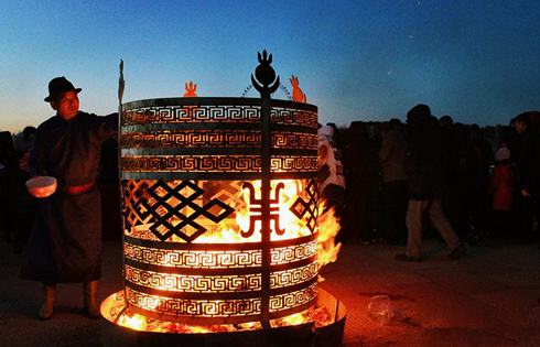 Mongolians exalt fire spirit in Bayannur