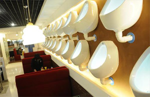 A new toilet-themed restaurant has opened in Kunming, Southwest China’s Yunnan province. The restaurant has bathroom decor, including colorful toilet seats, hand washing sinks and urinals.