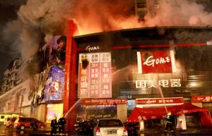 Fire engulfed an electric appliance store in east China's Zhejiang Province Friday night, local police said.
