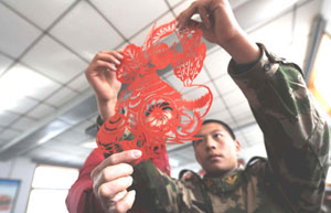 Teachers from Huaibei Special Education School and soldiers of an army unit held a traditional Chinese paper cutting activity for the upcoming new year. Cut outs are usually used to decorate doors and windows.