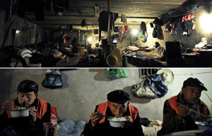 The overpass, named Wulidun, lies at the transportation center of Hefei city. More than 20 migrant workers have been living under the bridge since the beginning of 2010, with a roller shutter and cement boards to protect them from the elements.