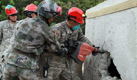 Residents stand next to a sign asking for help in super Typhoon Haiyan battered Tanauan, Leyte in central Philippines, Nov 14, 2013. The death toll from the ravage of Typhoon Haiyan (local name Yolanda) rose to 2,357, government agency announced Thursday morning. [Photo/Agencies] |