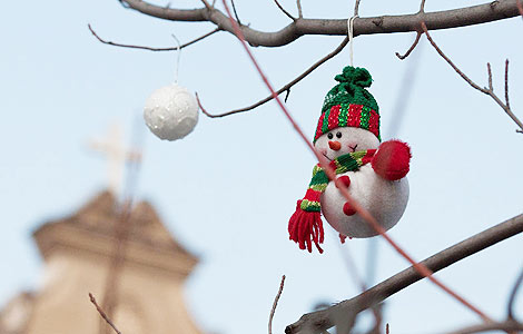 A woman looks at into a mirror as she takes part in a traditional horse parade down the streets of San Jose, December 26, 2013. The parade is part of the annual year-end festivities.[Photo/Agencies]
