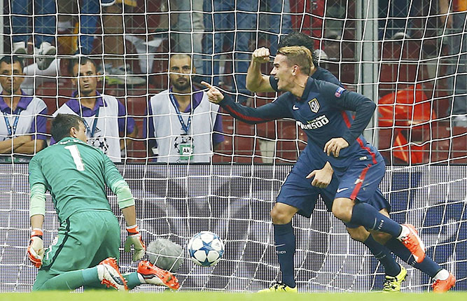 2015-09-16 13:29Griezmann double eases Atletico to win at Galatasaray