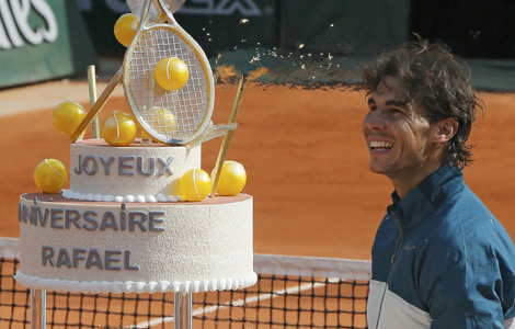Nadal tastes birthday win, Djokovic through