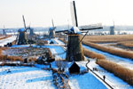 Snow sceneries in windmills town in Netherlands