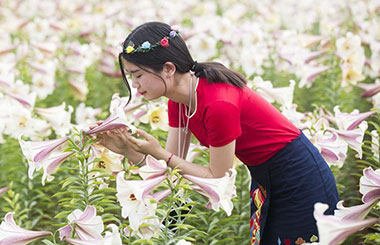 Tourists view lily flowers in Jiujiang