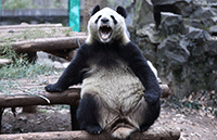 Zhang rides the over-grown swine. [Photo/IC]