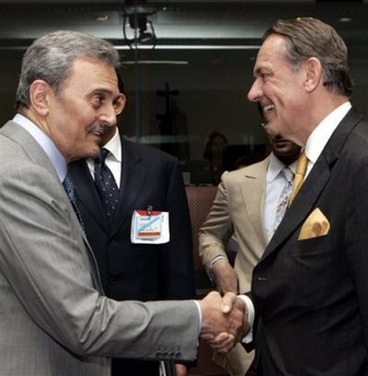 Minister for Foreign Affairs H.R.H. Prince Saud Al-Faisal, left, shakes