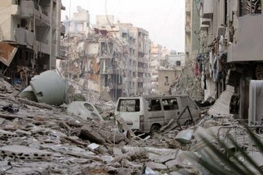 among damaged buildings in southern Beirut July 18, 2006. Israeli
