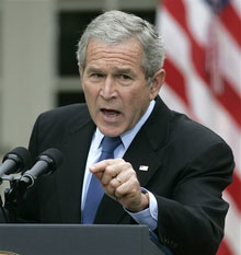 President Bush speaks during a news