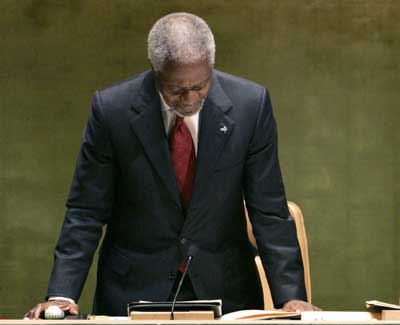 Former UN Secretary-General Kofi Annan(Xinhua)Updated: 2007-01-01 10:02 UN Secretary General Kofi Annan officially steps down on December 31, 2006, ending his 10-year term as UN chief.