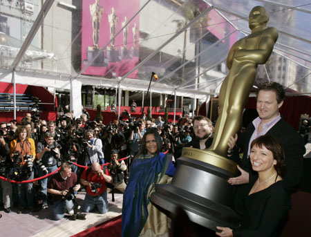 language film nominees pose outside the Kodak Theatre during preparations