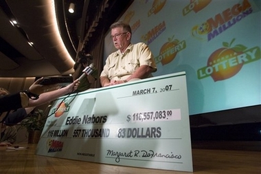 MegaMillions lottery co-winner Ed Nabors is interviewed by reporters during a news conference held after he showed up at the Georgia Lottery office to turn in his winning ticket, Wednesday, March 7, 2007, in Atlanta. Nabors, a Georgia truck driver, stepped forward Wednesday to claim half of a $390 million jackpot, the richest lottery prize in US history. [AP]