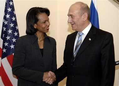 The new developments came at a time of high-profile diplomacy, with Secretary of State Condoleezza Rice and United Nations chief Ban Ki-Moon both in the region for talks with Israeli and Arab leaders. Rice has been trying to revive peace talks between Israel and the Palestinians, with help from Arab neighbors. The odds were long even before the latest complication posed by Hamas, a political and military organization that Israel, the United States and the European Union count as a terror group. A senior US official said Israeli Prime Minister Ehud Olmert agreed to sit down with Palestinian President Mahmoud Abbas for the first time since Abbas sealed a desperation pact with the militants. The two will hold "regular face-to-face discussions," said the official, speaking on condition of anonymity ahead of a planned address by Rice on Tuesday. The coalition government was formed more than a week ago under terms that fall short of international demands to recognize Israel, renounce violence and accept agreements negotiated by the previous, secular Palestinian leadership. Abbas has called the deal the best he could get from the politically formidable militants, and a necessary step to end deadly internal Palestinian violence. Olmert, who had once called Abbas a "partner for peace," said the deal meant he would limit talks with the Palestinian leader to humanitarian or similar immediate concerns. He initially ruled out more detailed discussions or negotiations. Olmert's reconsideration of that stance was a small step, since Olmert held such sessions with Abbas before the Hamas deal, but a sign of fresh and surprising traction toward peace talks despite the complication posed by Hamas. The US official said Olmert and Abbas would initially hold low-key "confidence-building" sessions. The talks have "an open door to all issues," the official said, but it was clear that the United States wanted Israel to go farther. Negotiators haggled behind closed doors for several hours Monday night, apparently stuck over whether Olmert would fully open the door to fresh talks over the hardest issues that divide Israel and the Palestinians, such as the borders of an eventual Palestinian state and the fate of disputed Jerusalem. It was not clear when the leaders might meet, although Palestinian officials had said US diplomats proposed a date in mid-April. The US official said Rice will continue to raise all issues in her separate meetings with each leader. "The prime minister is interested in keeping an open line of dialogue with