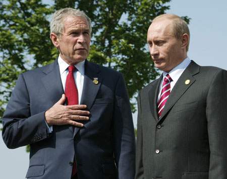 US President George W. Bush (L) meets with his Russian counterpart Vladimir Putin at the G8 summit in Heiligendamm, June 7, 2007. [Reuters]