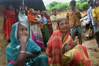 Bereaved Bangladeshi villagers await the arrival of rescue