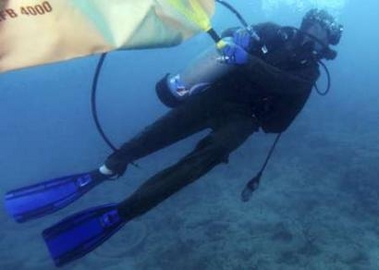 A US Navy Diver attached to Mobile Diving Salvage Unit (MDSU)